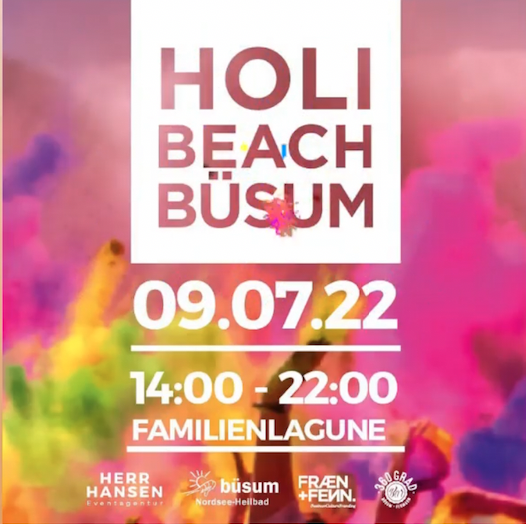 Am 09.07.2022 wird es farbenfroh und musikalisch auf der Familien-Lagune – HOLI BEACH BÜSUM.